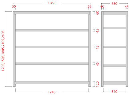 サイズ 高さ 横幅 奥行 表記寸法 1800 1800 600 外寸法 1805 1860 630 棚板寸法 1740 600 ※設置場所は外寸法+50mm位の余裕をもって下さい。