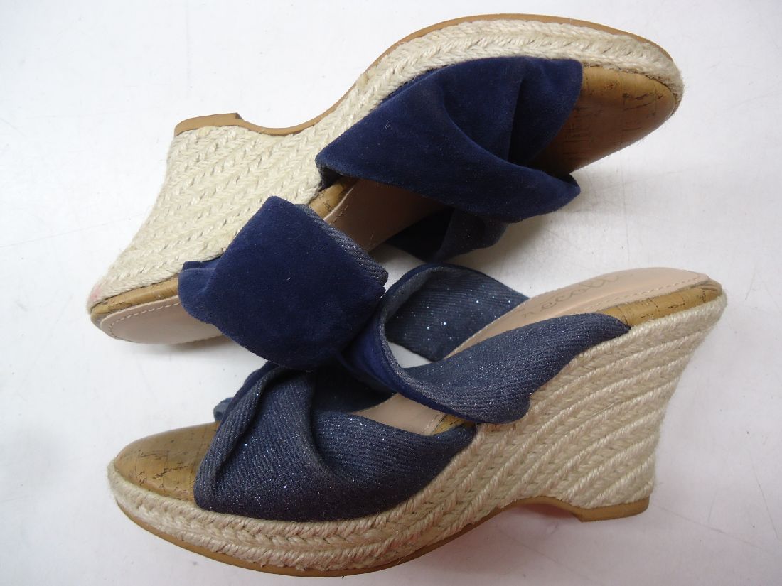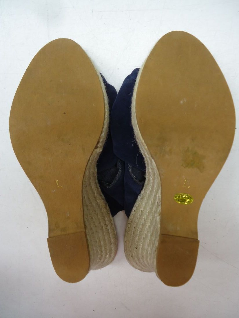(複数ご購入の場合も一足分の送料のみとなります)【メーカー】recolte/レコルト【商品名】ウェッジサンダル【サイズ】表記サイズ L(24.0cm程度)実寸 ヒール高 約9cm ストーム高 約2cm【色】ネイビー【素材】布素材【状態】商品ランク Cランク※中古の商品ですので多少の使用感、傷等ございます。